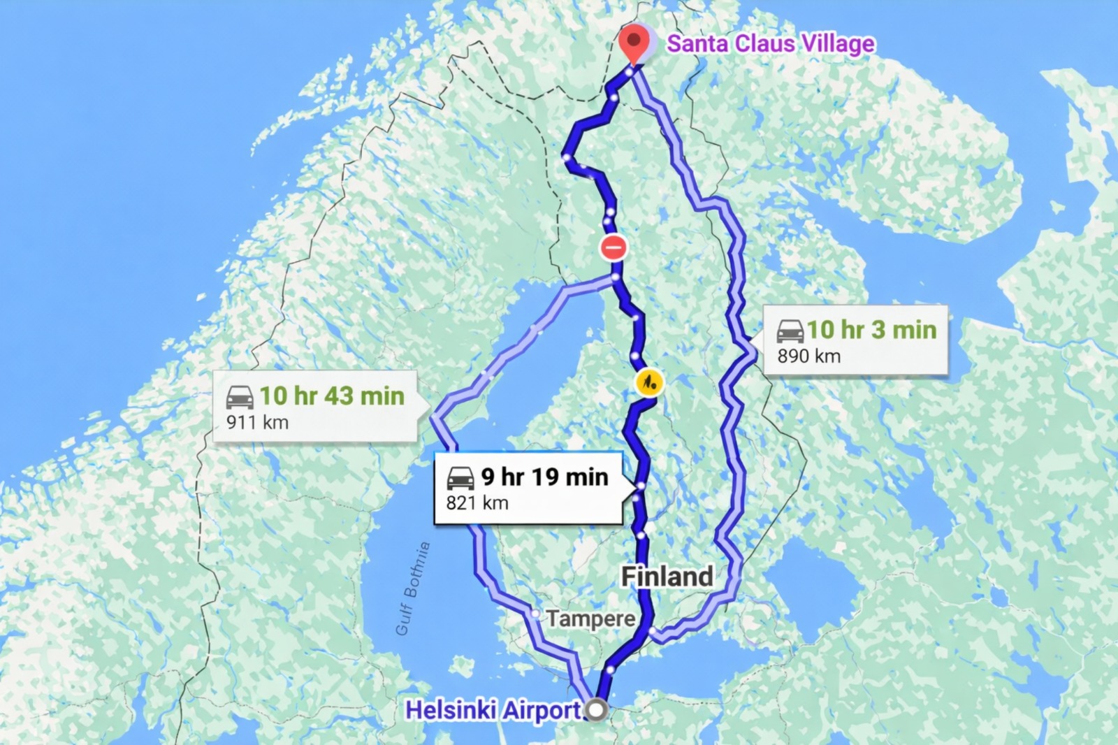 - Domestic flights (Helsinki ↔ Rovaniemi ↔ Helsinki)