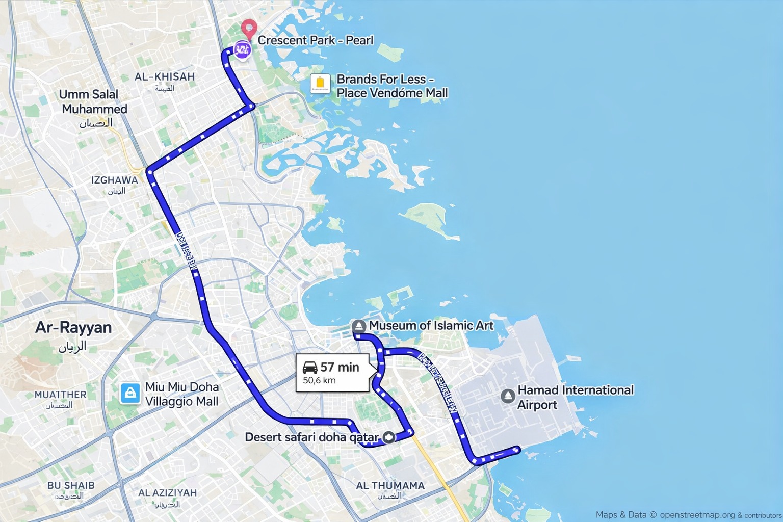 Free day for optional tours (Zekreet, North Qatar, theme parks) Last-minute shopping Overnight stay in Doha